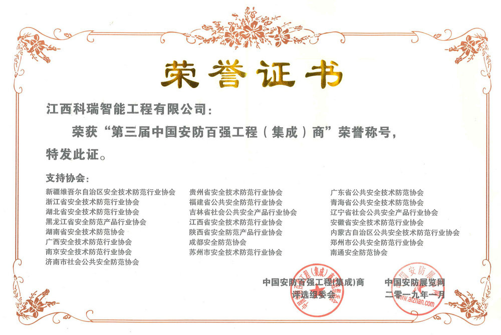 榮獲“第三屆中國安防百強工程商”、“2018年江西省優秀安防工程企業”榮譽稱號!